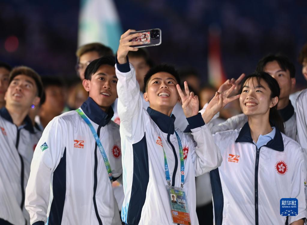 7月28日,中国香港大学生体育代表团在开幕式上入场。