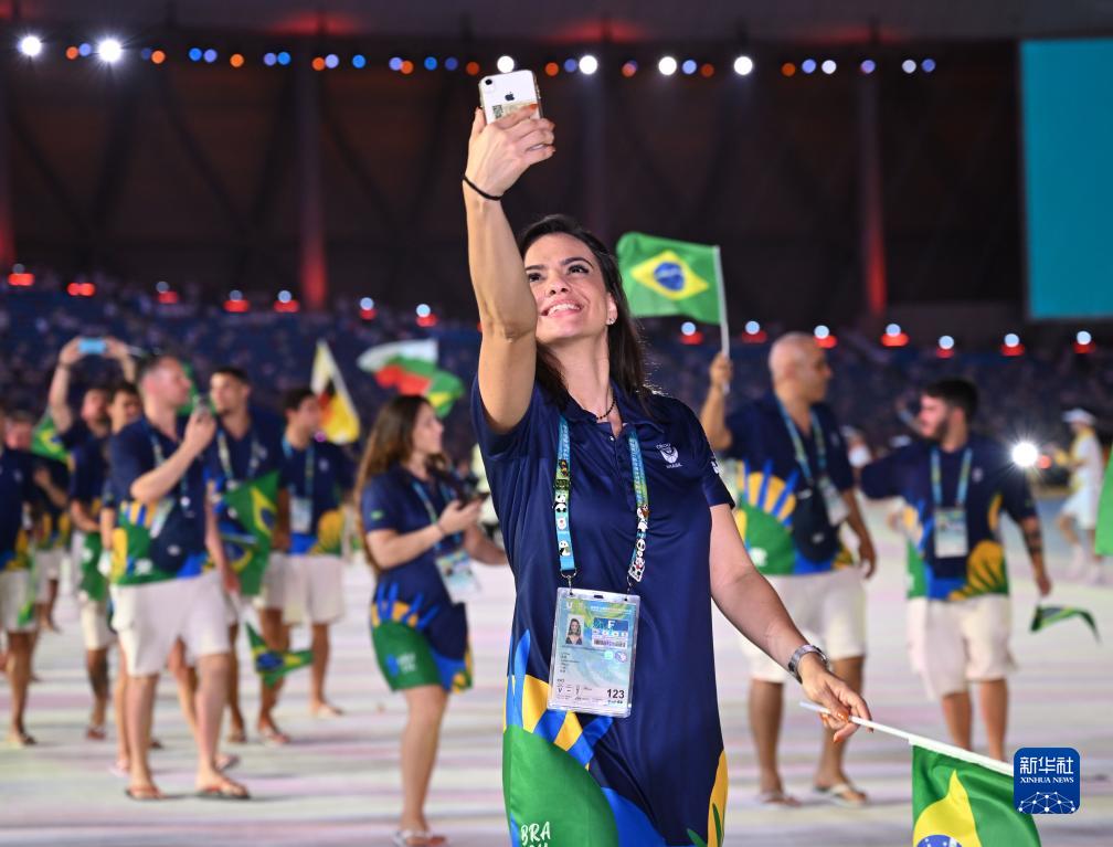 7月28日,巴西大学生体育代表团在开幕式上入场。