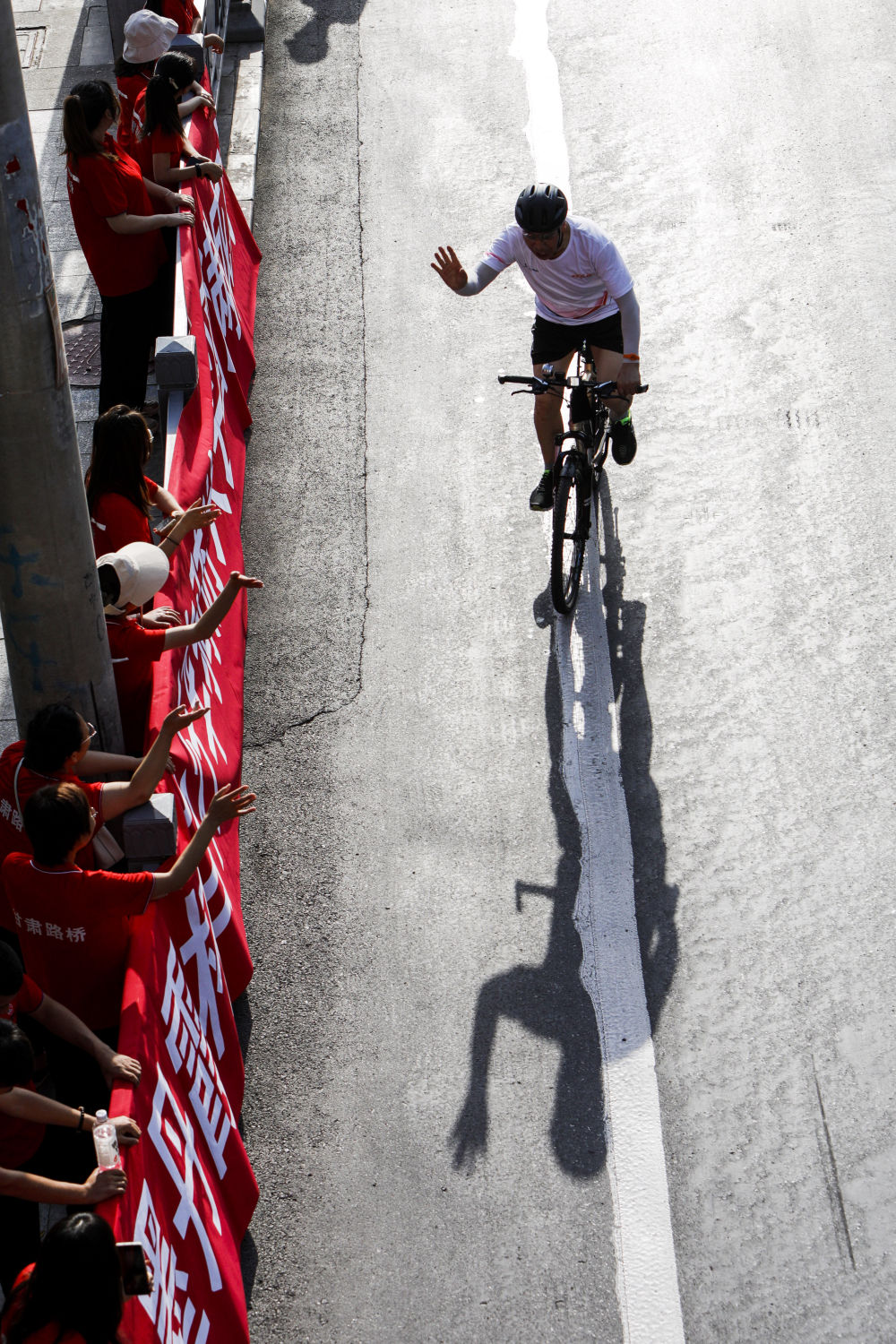 8月5日,观众为骑行爱好者加油呐喊。新华社记者方欣摄