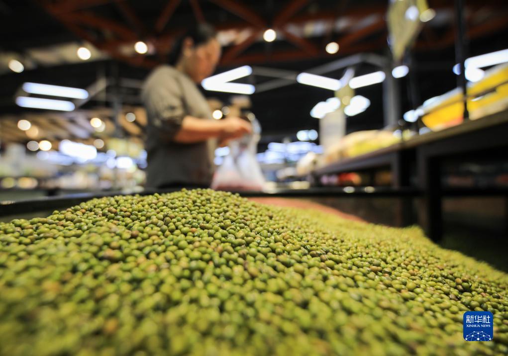 8月9日,消费者在贵州省黔东南苗族侗族自治州锦屏县三江镇一家超市选购坚果。新华社发(杨晓海摄)