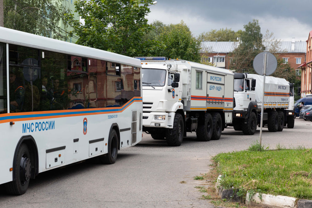 ↑8月9日,在俄罗斯莫斯科州,救援车辆抵达事发地点附近。