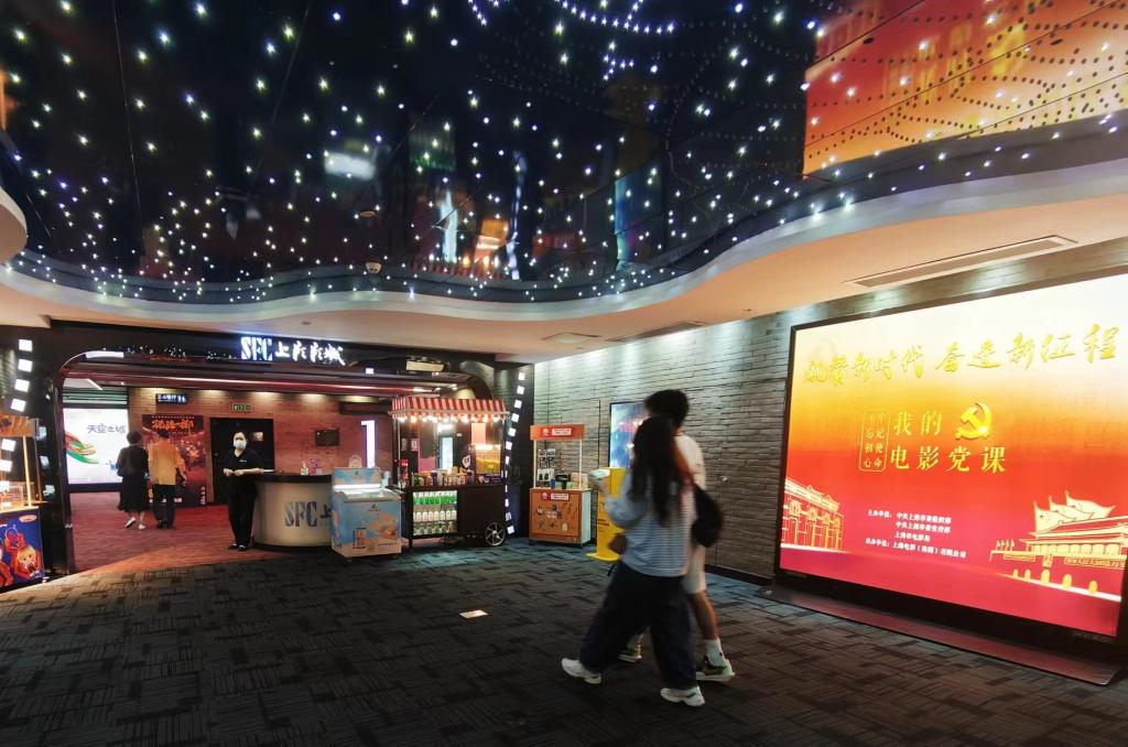 8月28日,在上海,观众陆续进入影院观影。新华社发(薛思雯摄)