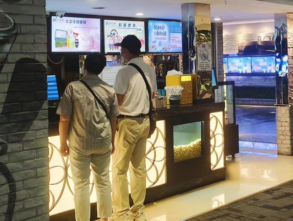 8月28日,观众在上海市徐汇区一家影院购买电影票。新华社发(薛思雯摄)