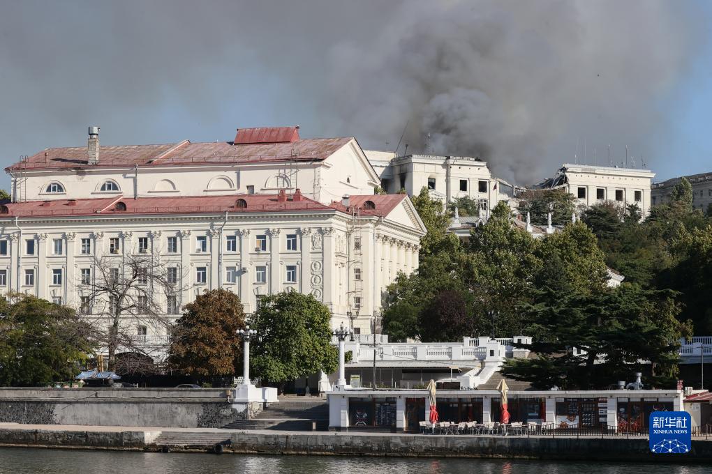 这是9月22日在黑海港口城市塞瓦斯托波尔拍摄的俄罗斯黑海舰队总部的受损建筑。