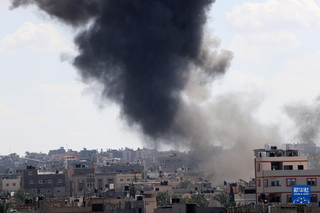10月15日,加沙地带南部城市汗尤尼斯的建筑遭以色列军队空袭后升起浓烟。新华社发(里泽克·阿卜杜勒贾瓦德 摄)
