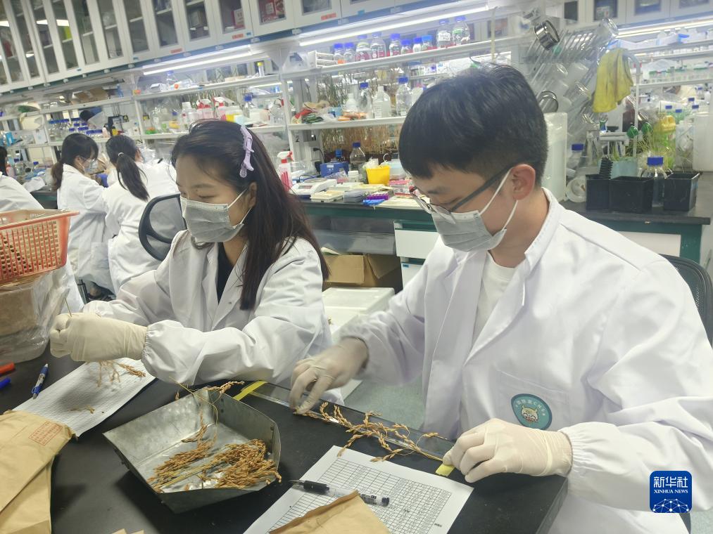 10月17日,科研人员在位于深圳的中国农业科学院深圳农业基因组研究所进行水稻性状测定。新华社发