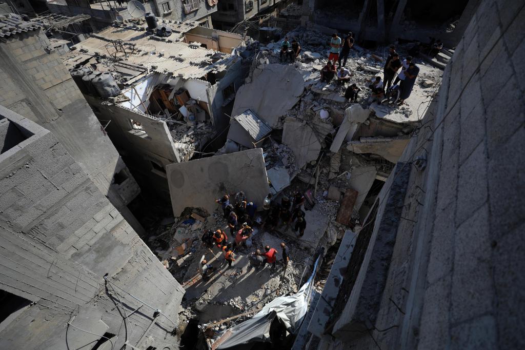 在加沙南部汗尤尼斯一个被夷为平地的街区,人们在废墟中不断挖掘。当11岁的西拉·哈姆丹被人们从破碎的水泥块中抬出,她的身下还躺着9岁的妹妹蒂拉。人们用花床单把两个女孩裹起来,送往太平间。