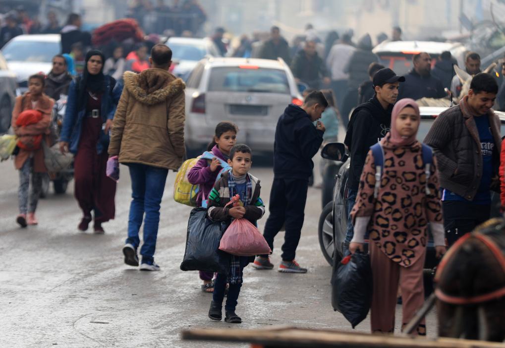 12月1日,在加沙地带南部城市汗尤尼斯,人们在以军恢复军事行动后逃离家园。新华社发(亚西尔·库迪摄)