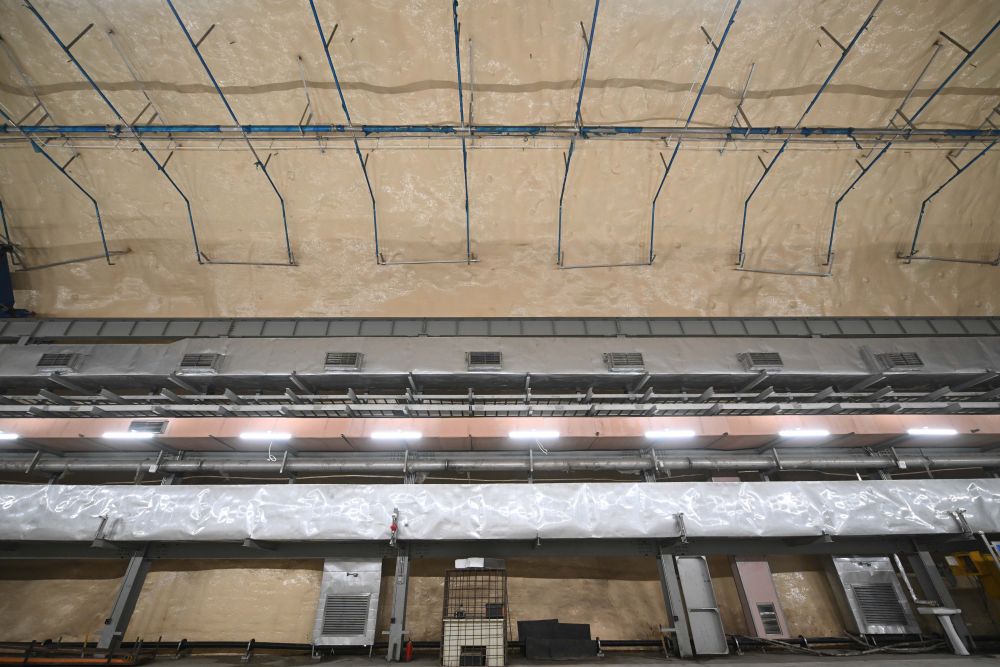 中国锦屏地下实验室二期11万平方米的洞室表面均涂上了防水抑氡层,实验室内的空调管道均采用特殊材料,以控制辐射本底(11月7日摄)。新华社记者 胥冰洁 摄