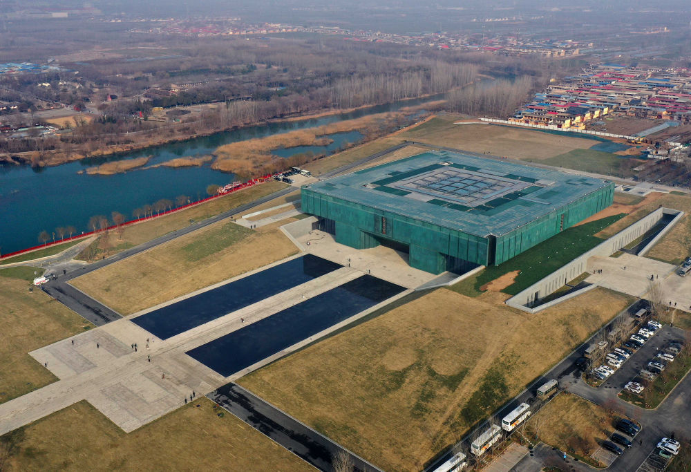 这是2024年2月26日拍摄的位于河南省安阳市的殷墟博物馆新馆(无人机照片)。新华社记者李安摄
