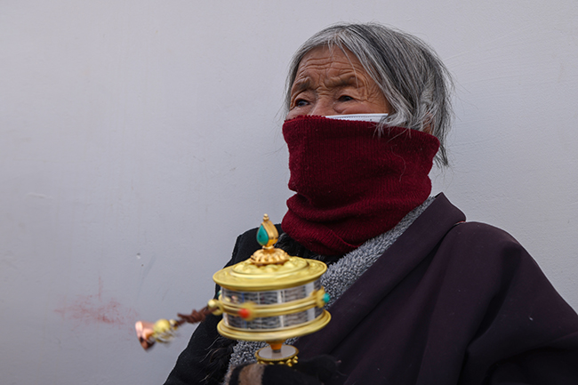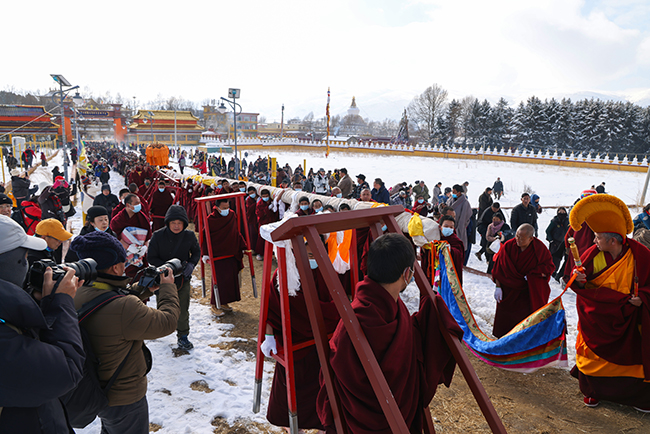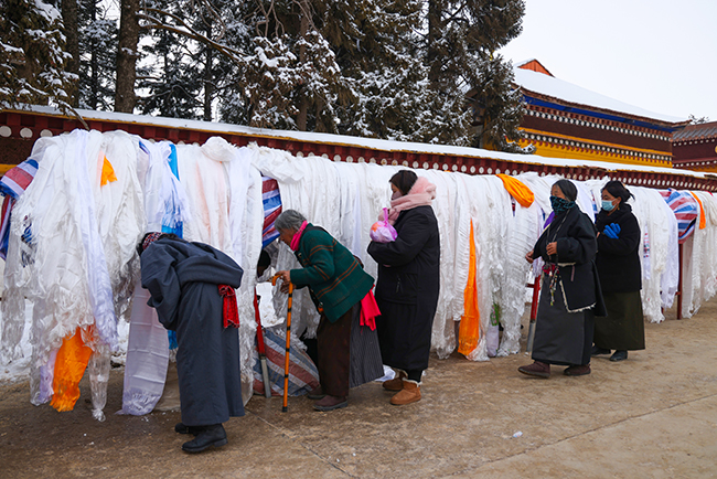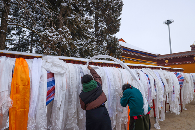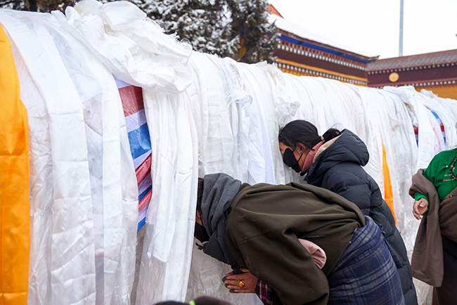 2024龙年正月十六,阿坝县格尔登寺信众瞻佛祈愿。 贾笑云 摄