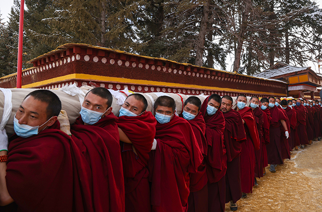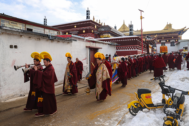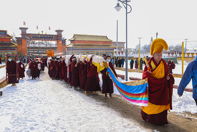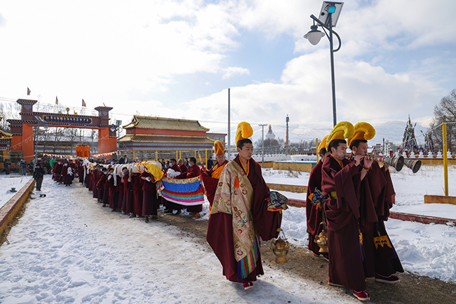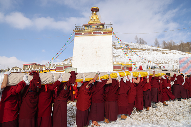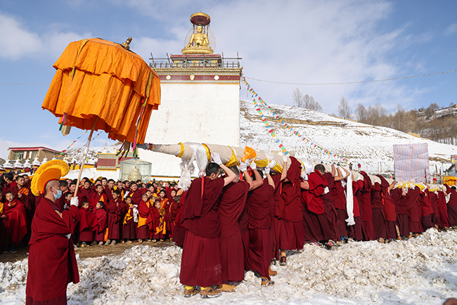 2024龙年正月十六,阿坝县格尔登寺佛像抬往瞻佛台。 贾笑云 摄