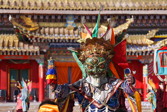 郎依寺“莫郎节,信教群众中彪悍魁梧的藏族青年帅哥牵着经过精心打扮的高头骏马,排起长龙般的马队,彩旗飞扬气势壮观从寺院走过,整个现场沉浸在神秘的宗教氛围之中,后是的跳神活动,则将活动推向了高潮。