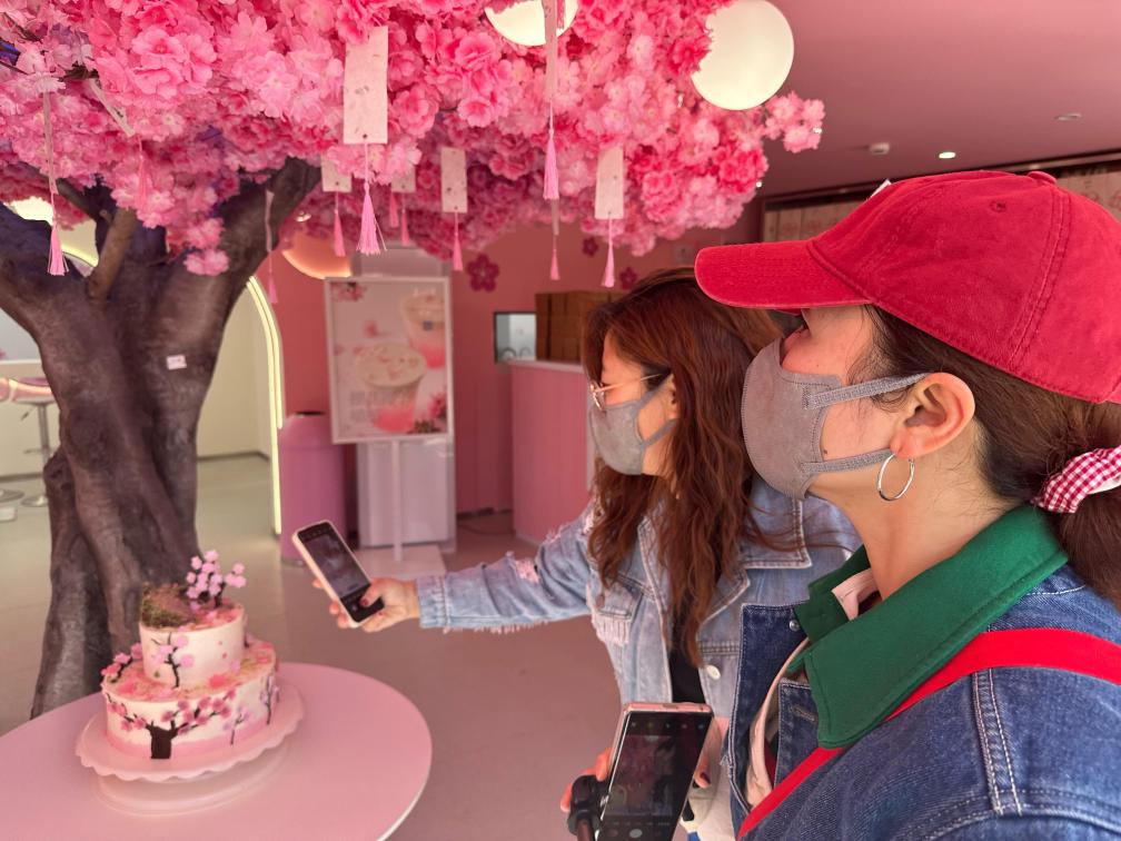 3月19日,游客“打卡”北京市玉渊潭公园内的甜品店。新华社记者杨淑君 摄