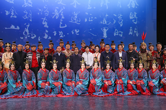 嘉宾与民族舞剧《飞将李广》演职人员合影。 贾笑云 摄