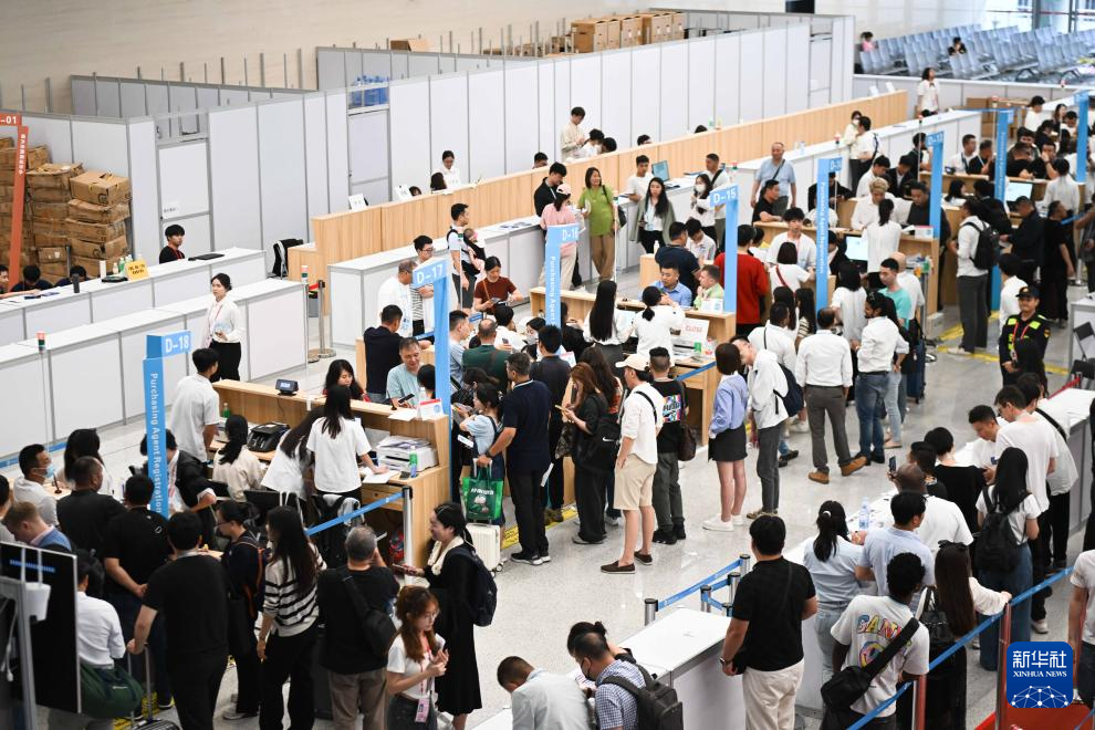4月15日,采购商在广交会展馆办理证件。新华社记者 邓华 摄