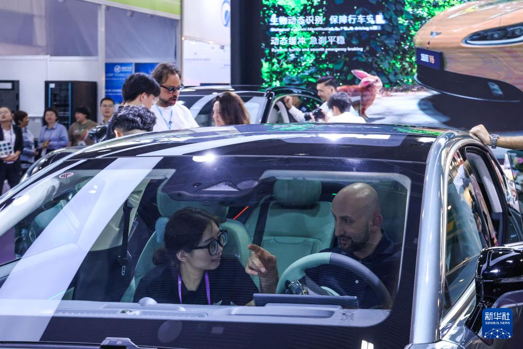 4月15日,采购商在广交会新能源汽车展区了解中国新能源汽车产品。新华社记者 刘大伟 摄