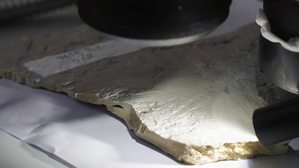 专家团队在对化石进行观察。(单德志 摄)