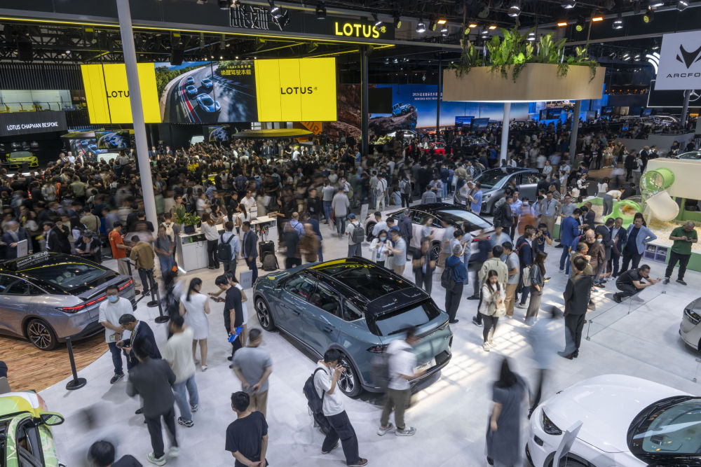 2024年4月25日,人们在2024(第十八届)北京国际汽车展览会现场参观。新华社记者才扬摄