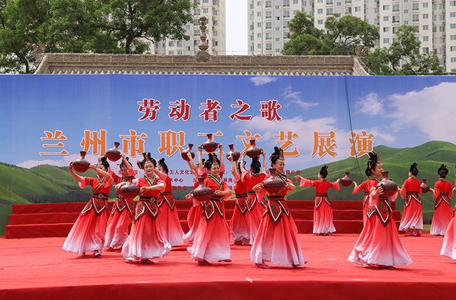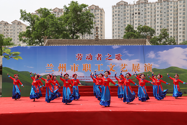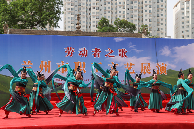 兰州金轮舞团演出舞蹈《共圆中国梦》。 贾笑云 摄