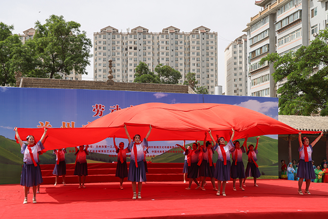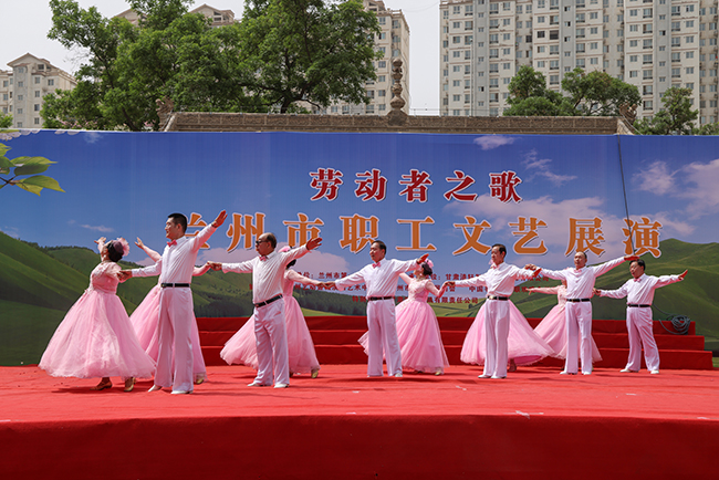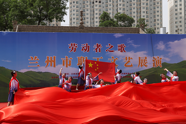 兰州志强艺术团演出舞蹈《红旗颂》。 贾笑云 摄