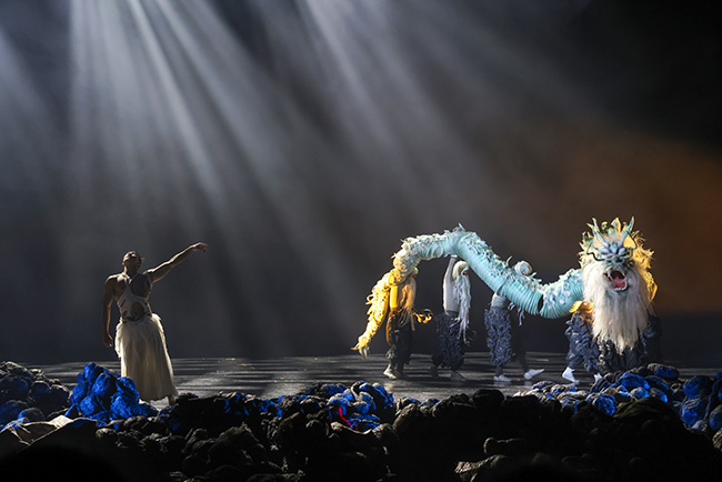 《平潭映象》以浪漫主义古典神话的叙事方式,对渊远流长的中国传统民俗文化作出当代的再诠释与再表达,建构起海峡两岸共同的海洋文化景象与脉络,以意象化的新东方美学作为审美理念,融合非遗传承,由两岸艺术家共创同演,造奇设幻,讲述了一个具有浓厚东方色彩的古典神话史诗,描绘了一幅用舞蹈作笔、以文化为墨的艺术画卷,呈现了一部两岸人文交流与融合的舞台巨作。