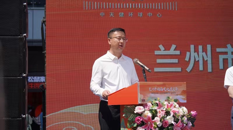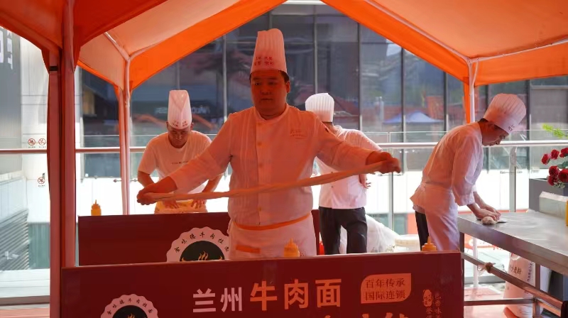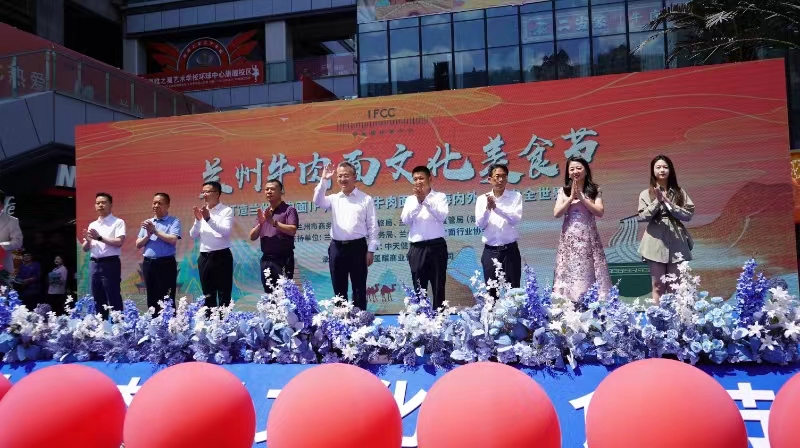 大西北网讯(记者王志俭文图) 6月14日下午14时许艳阳高照,由兰州市商务局、兰州市文旅局、兰州市市场监督局指导,兰州市城关区商务局、兰州市牛肉拉面行业协会、中天健集团联合主办的兰州牛肉面文化美食节,在民主东路的中天健环球中心盛大开幕。