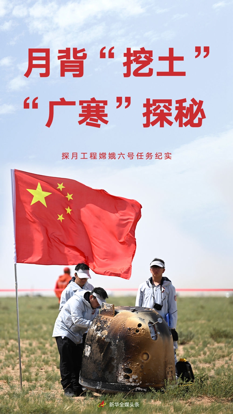 探测器稳稳落月的“轻盈”身姿,于月背竖起的五星红旗,“挖土”后在月面留下的“中”字……这场持续53天的“追月大片”,一幕幕场景令人记忆犹新。