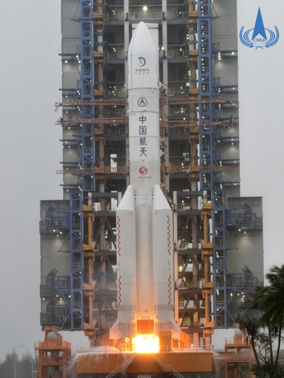 2024年5月3日17时27分,嫦娥六号探测器由长征五号遥八运载火箭在中国文昌航天发射场发射,之后准确进入地月转移轨道,发射任务取得圆满成功。新华社发(国家航天局供图)