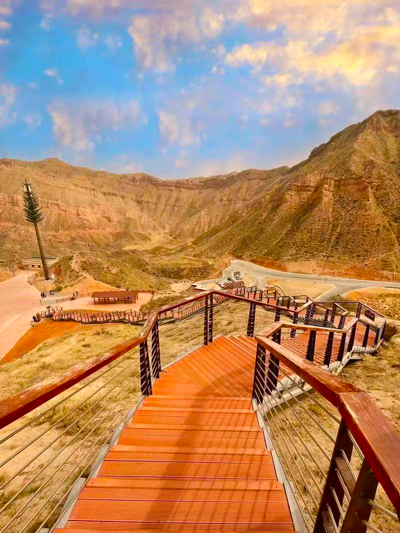 站在观景台山下,直射的阳光使人感到灼热。望着陡峭蜿蜒的盘山栈道,记者们不免心生畏惧。然而,随着旅游设施的完善,游客数量呈上升趋势,这里逐渐成为热门景点。电梯到达最高处的丹顶揽胜观景平台,眼前的红色大地让人震撼不已。山峦起伏、红色层叠,犹如百花园中的牡丹,争奇斗艳。如此壮观的自然景观,不仅让人赏心悦目,更让人感到心灵的震撼。