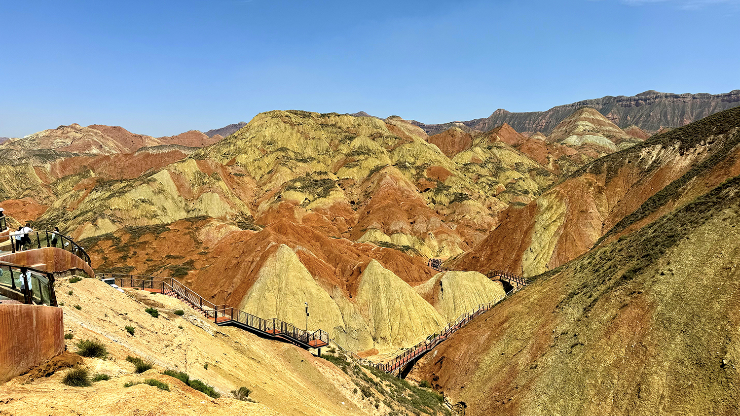 水墨丹霞,神工造物。乾坤兮屹屹,云天阔。层峦叠嶂,斑斓叫绝。幽远莫测,烟波披拂! 霁日光风,骋怀激越。逸情安可忽?莫停歇!丝绸古道,生机勃勃。永登极目,本心欢悦。