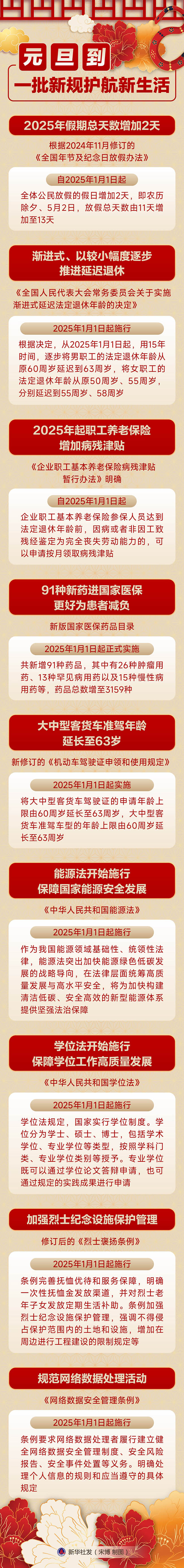 2025年假期总天数增加2天,渐进式、以较小幅度逐步推进延迟退休开始施行,职工养老保险增加病残津贴……哪条你最关注?一起来看!