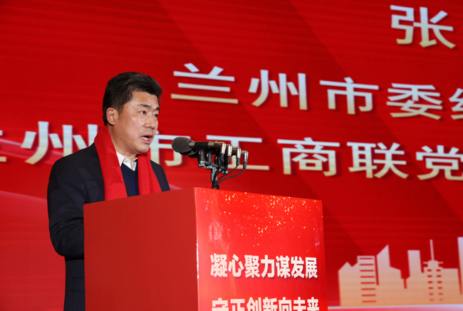 兰州市委统战部副部长、兰州市工商联党组书记、常务副主席张红桢致词。 贾笑云 摄