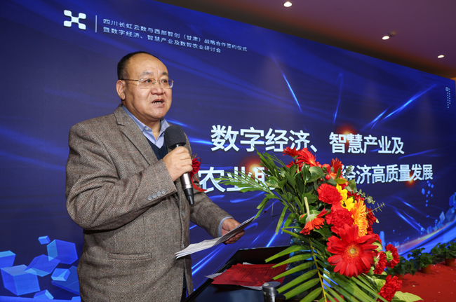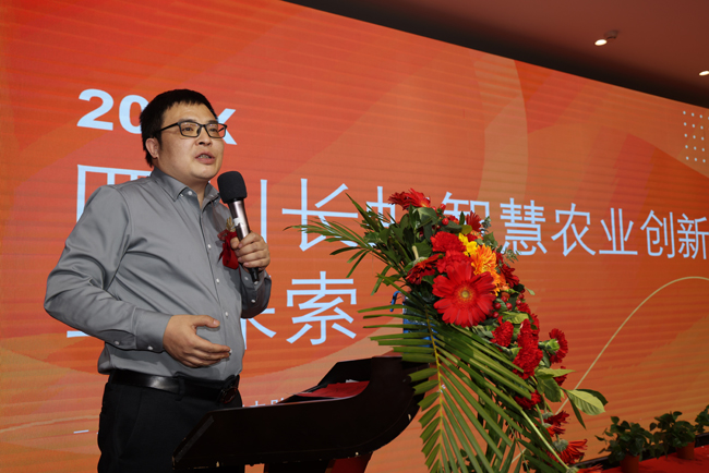 长虹智慧农业研究院院长周太刚作数字农业报告。 贾笑云 摄