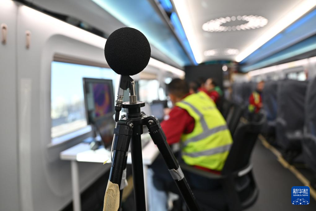 这是2月25日拍摄的CR450动车组样车内布置的噪声传感器。