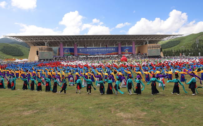 本届旅游艺术节由开幕式、第三届羚城音乐节、招商引资活动、“我为家乡唱首歌”音乐盛典等系列活动组成,以铸牢中华民族共同体意识为主线,深入挖掘全州特色文化和红色资源,精心编排南木特藏戏“文成公主进藏”和红军在甘南、腊子口战役、达玛花开等民族团结主题优秀文化作品。开幕式通过“情景再现+艺术创作”的方式,以故事性线索贯穿整场演出,用规模盛大的万人锅庄舞收尾,呈现了甘南独具特色的文化底蕴,也展示了甘南发展的历史巨变。