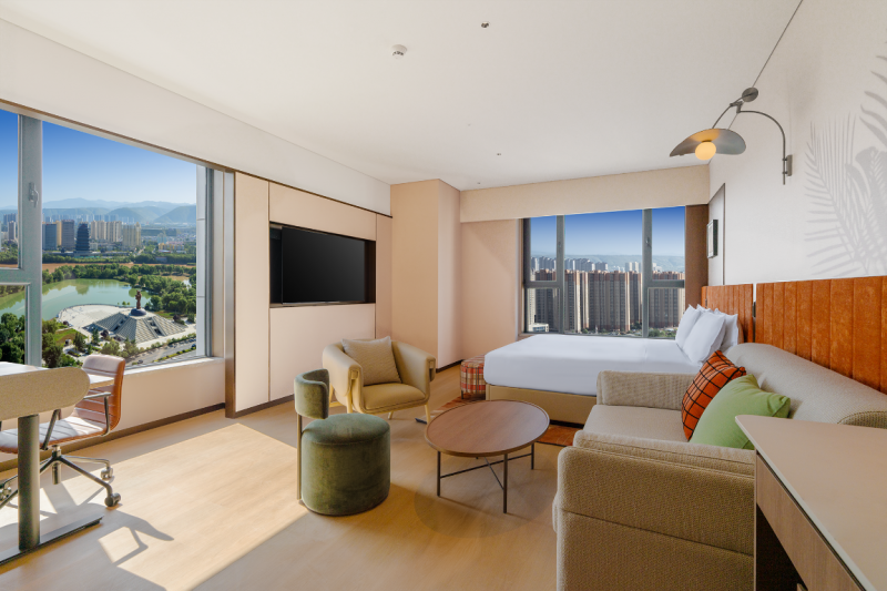 酒店拥有140间现代舒适客房,均位于29层及以上高空,包括家庭房及连通客房满足不同宾客的出行需求。透过客房的大面积落地窗,宾客可以尽享奔腾不息的黄河胜景或壮丽的城市景观。步入客房,全自动灯光系统及智能温控系统引导宾客进入放松与休憩的私人空间。客房配备65寸液晶电视、无线上网服务、可升降办公桌及人体工学椅、舒达床垫、无线充电设备及Peter Thomas®彼得罗夫洗浴备品等,为宾客提供高端亦适居的住宿环境。为满足宾客多样化的旅行需求,配有沙发床的家庭房及特别设置的连通客房让宾客在旅行中进一步获得更多的自由度与灵活性。