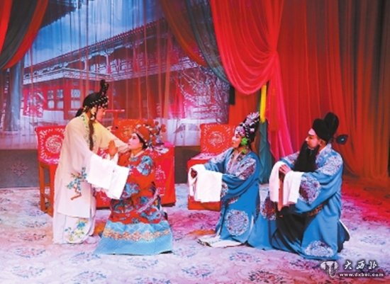靖远县五合乡崇文农民秦腔剧团在自己的剧场演出秦腔《春江月》