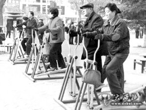 记者从中山桥一路向东走去,不时可看到黄河边晨练的人群。有打太极拳的,也有跳扇子舞的,还有随音乐玩健身球的。到了水文站东侧的老年公园,这里晨练和休闲的人更多。老远就能听到吼秦腔的声音,打双扣的、下棋的、跳舞的、耍拳、耍剑的五花八门,让人眼花缭乱。一位大爷告诉记者,往年冬天只是中午出来一会儿,今冬早晨10点多就出门了,能一直玩到下午5点,每天回家时间和上班人一样。“如果你13点或14点来,这里到处是人热闹得很。”这位大爷介绍说。