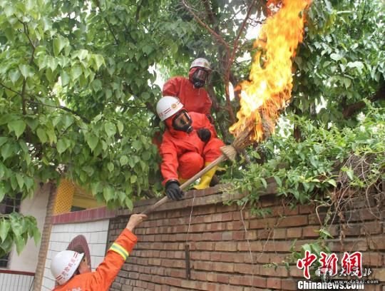 大西北网5月26日讯 据中新网消息:25日,甘肃白银消防靖远中队用火烧的办法,成功摘除民宅附近马蜂毒窝,为当地民众解除了困扰。