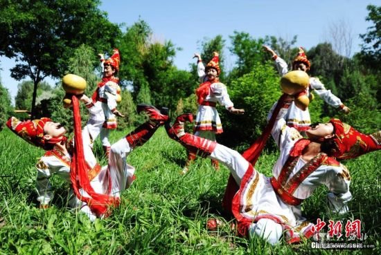 大西北网7月2日讯:据中新网消息,6月30日,甘肃山丹县的演员们演艺西域古典舞蹈胡腾舞。据了解,该县演艺公司根据历史资料创排出西域古典舞蹈胡腾舞。胡腾舞,流传于西北地区的一种民间舞蹈。唐代宗时,河西、陇右一带20余州被吐蕃占领,原来杂居在该地区的许多胡人流落异乡,有的以民族歌舞谋生,有的以做边贸生意为生。每当交易谈成时,双方便饮酒做乐,胡人遂趁兴起舞,于是,“胡腾舞”在河西走廊一带流传开来。 (责任编辑:鑫报)