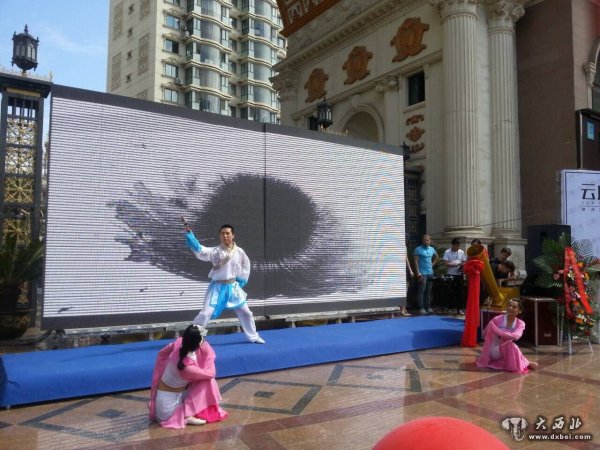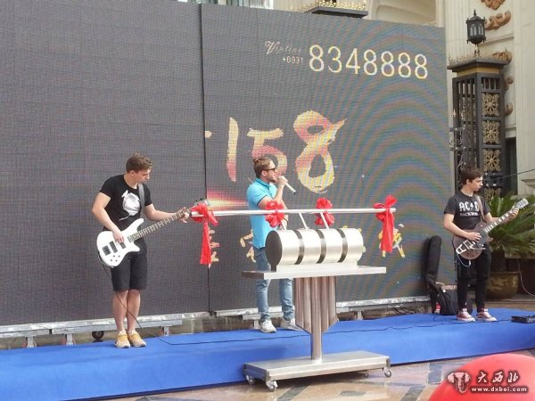 仪式还未开始,舞台上已经有三个年轻帅气的外国小伙子拿着贝斯吉他准备为现场的广场献唱了。一首首好听的英文歌从他们口中传出,感染着在场的人们,也传向远方。