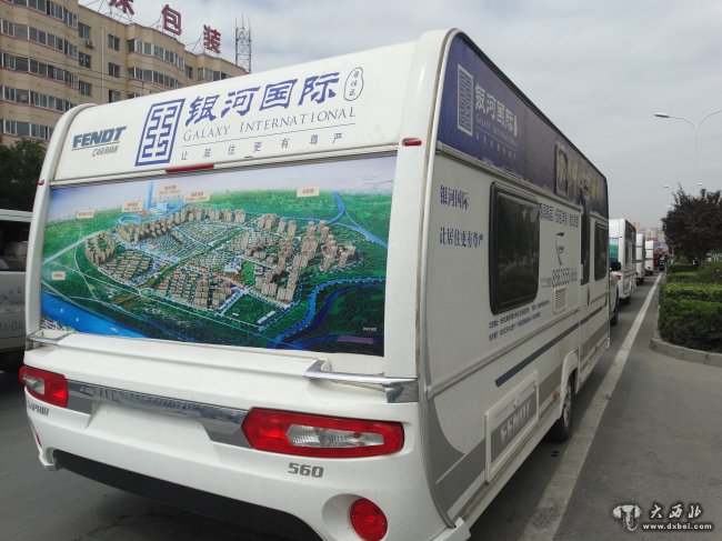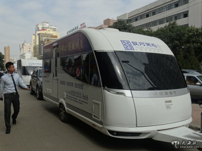 大西北网讯(记者张云文) 8月12日,四台艾威国际房车载着银河国际的房地产广告巡游金城,这是一次房地产商和车的一次商业联盟,更重要的是开启了兰州休闲居住的新模式。