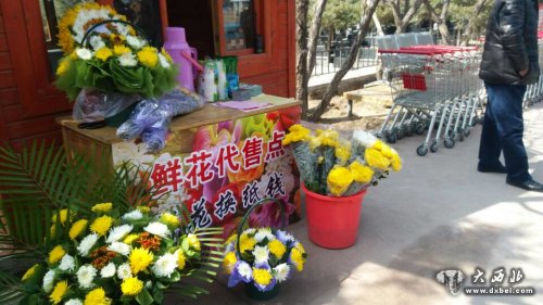 龙凤园公墓推出的鲜花换纸钱服务点,引导绿色文明祭扫