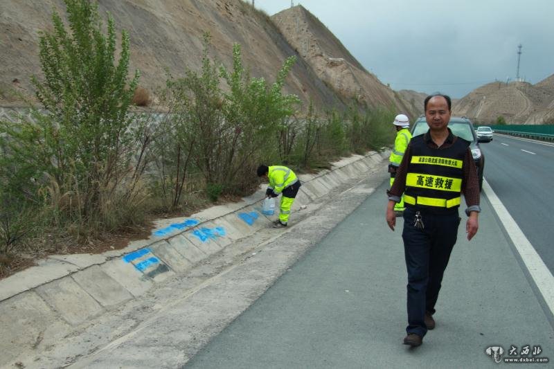 隧道受阻,意味着G30连霍高速公路天祝、古浪段的往来车流将遭停滞。魏喜道穿着昨天清障救援时来不及换下的血衣,驱车于7时10分到达事故现场,跳下车就布设起事故现场防护设施,并协助交警、路政人员跑到防护区最远端摆放了“前方事故,减速缓行”的反光警示牌,隧道切换行车道为半幅通行状态,另半幅安放“禁止通行”指示灯。忙完这些工作,时间已过去7分钟。在等待交警现场勘查完毕后,准备进行道路清障的魏喜道,站在隧道检修台阶上,用对讲机向上级聚精会神地反映下步清障工作情况。