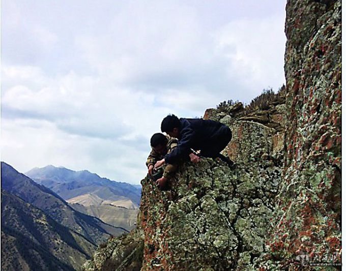 爬上陡峭的岩石进行观测采样