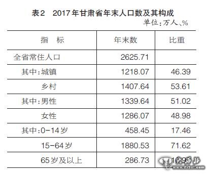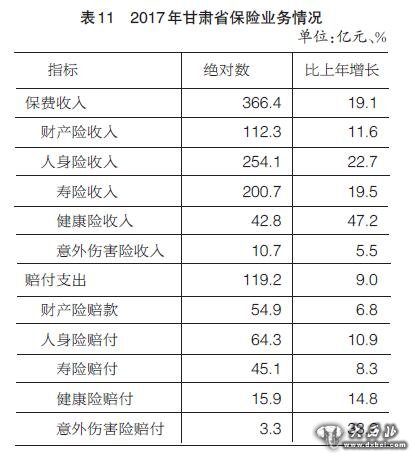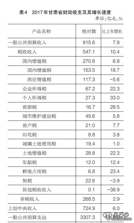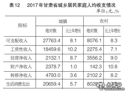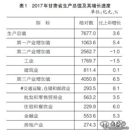 2017年甘肃省国民经济和社会发展统计公报