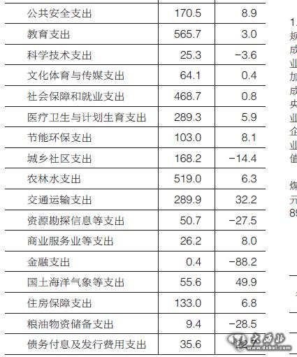 全年一般公共预算收入815.6亿元,比上年增长7.8%。其中,税收收入547.1亿元,增长10.4%;非税收入268.5亿元,增长2.9%。从主体税种看,国内增值税270.8亿元,增长6.8%;企业所得税67.2亿元,增长22.3%;个人所得税27.3亿元,增长33.0%。一般公共预算支出3307.3亿元,增长5.0%。其中,交通运输支出289.9亿元,增长32.2%;公共安全支出170.5亿元,增长8.9%;节能环保支出103.0亿元,增长8.1%;农林水支出519.0亿元,增长6.3%;一般公共服务支出308.6亿元,增长6.1%;医疗卫生与计划生育支出289.3亿元,增长5.9%。