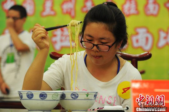 这是在兰州上演的一场吃面大赛。杨艳敏摄