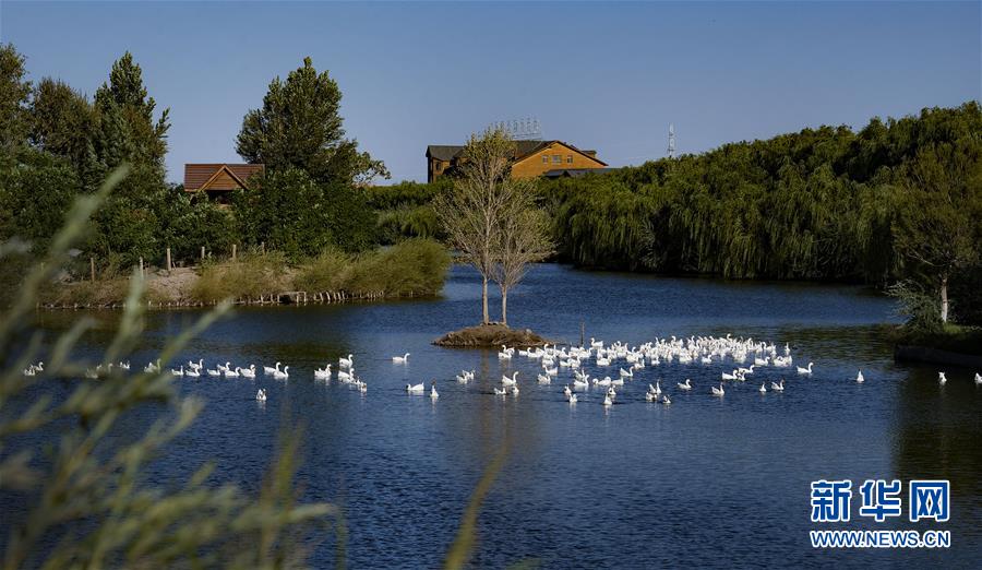 祁连山下的甘肃省张掖市高台县黑河湿地,总面积2.95万公顷,属西北荒漠地区典型的内陆湿地。近年来,当地政府秉持“绿水青山就是金山银山”生态理念,健全管护机构、实施生态项目、开展生态监测、强化宣传教育,采取封滩育草、人工造林等措施,强力推进湿地保护修复及生态文明建设,建成高台国家城市湿地公园、月牙湖体育公园等,人居环境得到极大改善,整个县城更是“城在林中、水在城中、人在景中”,成为戈壁滩上如诗似画的“小江南”。 新华社记者 陶明摄